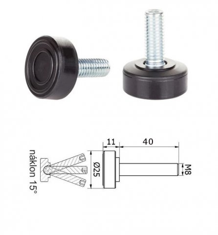 Pre väčší rozsah nastavenia výšky medzi parapetom a telom držiaka KNO250 je možné dodať inú nastaviteľnú kĺbovú nožičku (rozsah 25 až 60mm).